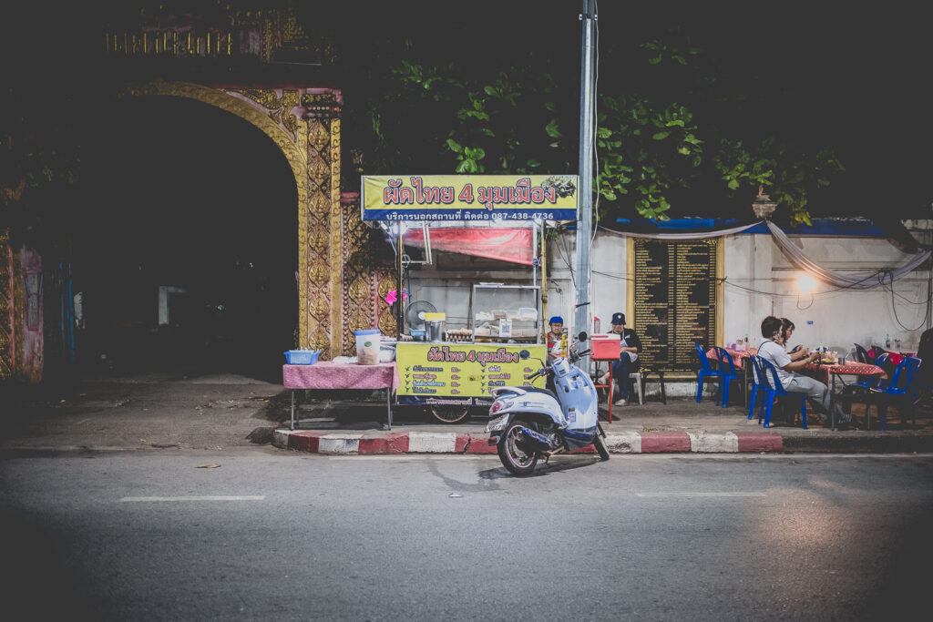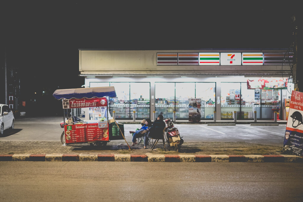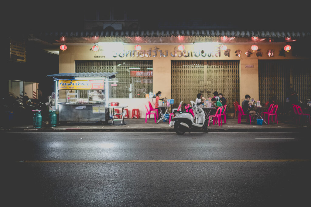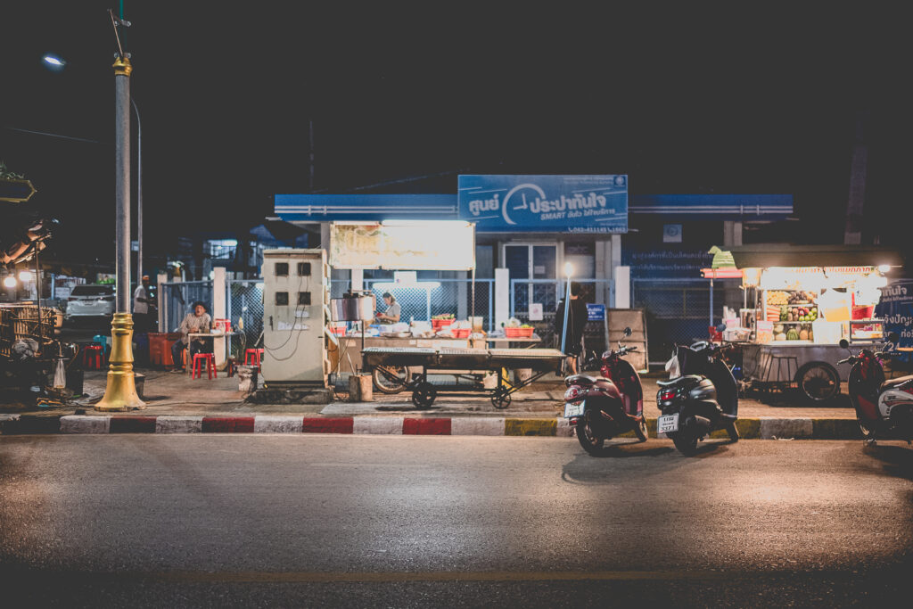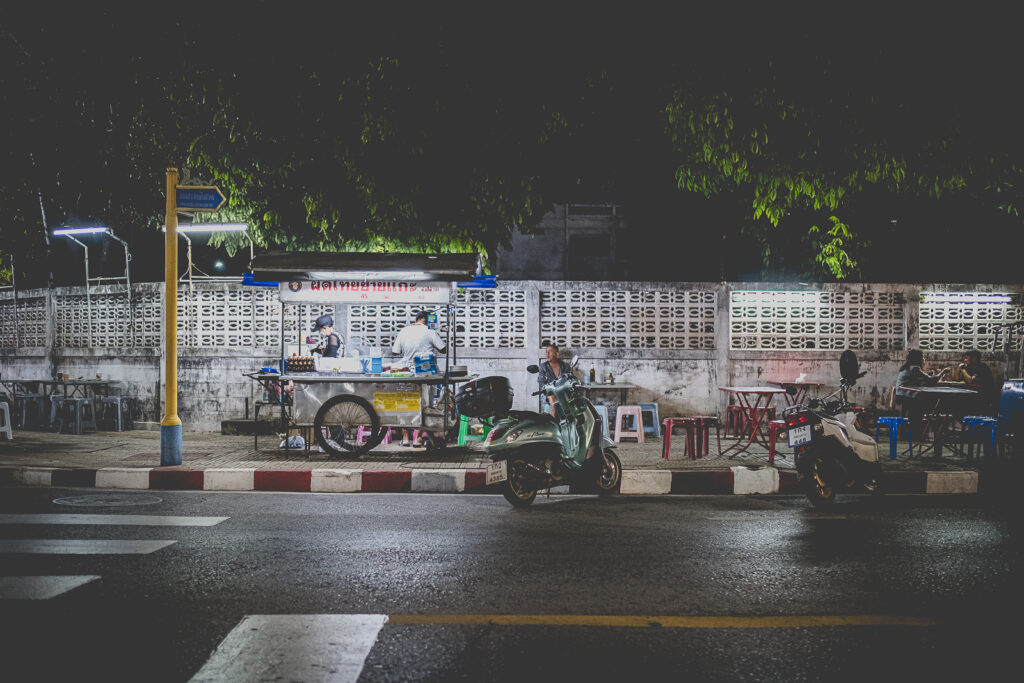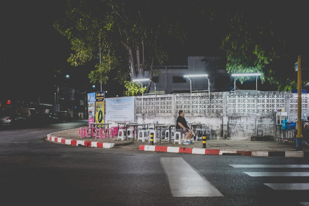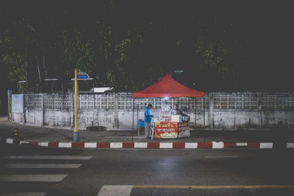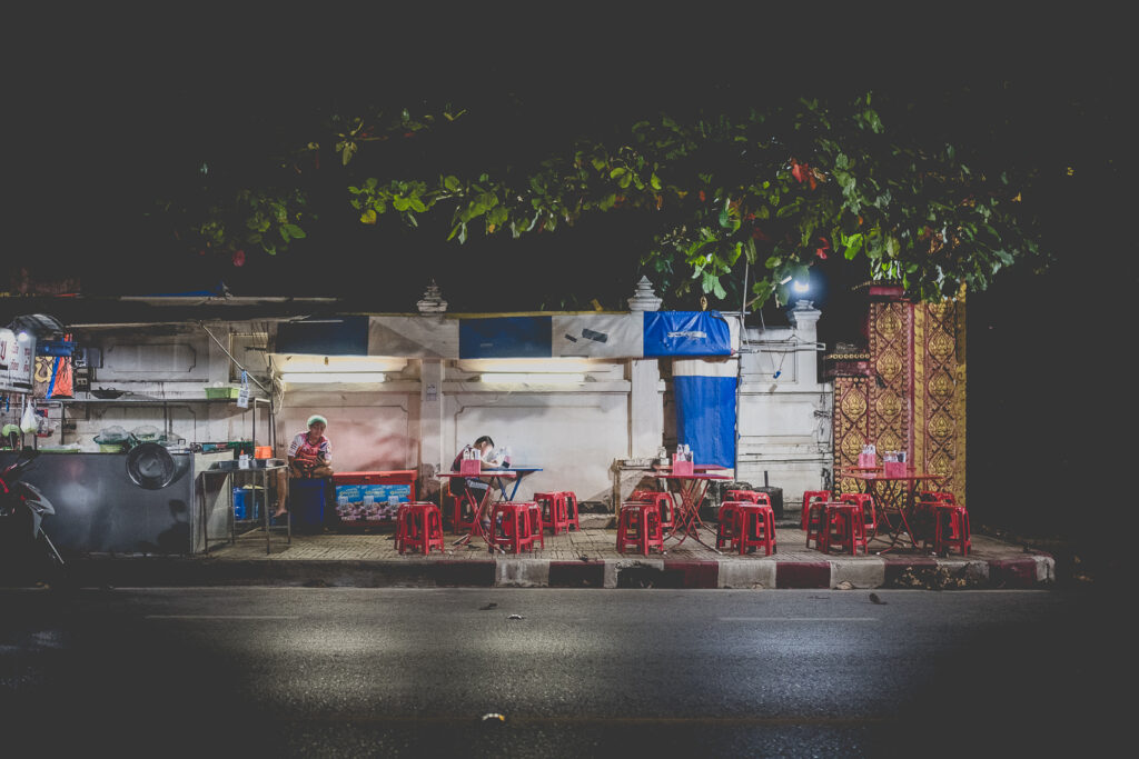 In Nong Khai — as in many other places — there are countless examples of them. They change already at first light, sometimes even before. A shack, a cart. Assembled in silence. A stove, a few brightly coloured plastic stools, so low they make you feel like a child again. Perhaps it is a way of not wanting to disturb that keeps them so close to the ground — knees drawn up to your chest.
